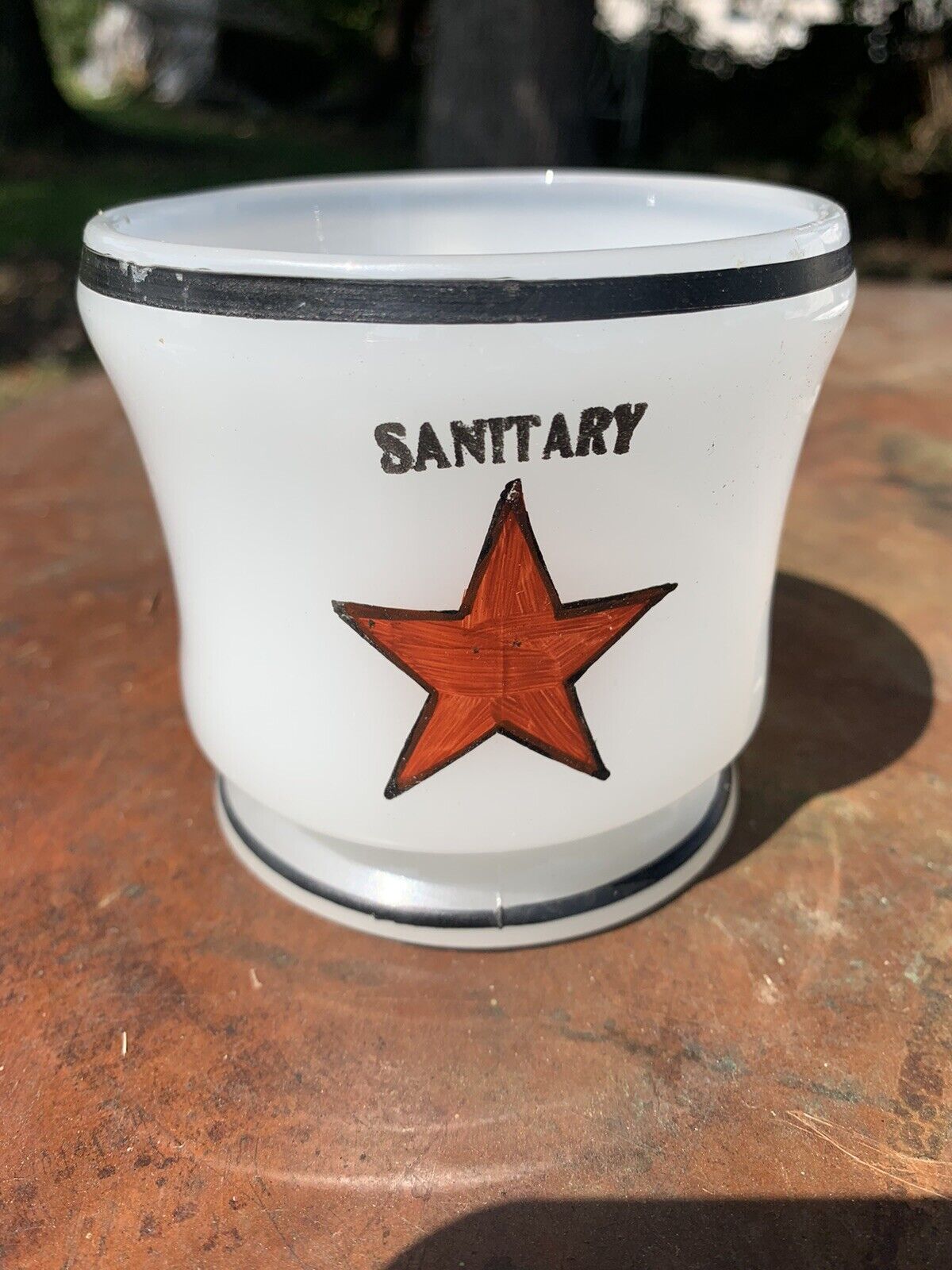 Antique Red Star Soap Advertising Milk Glass Shaving Mug Vintage Razor Cup MHCo