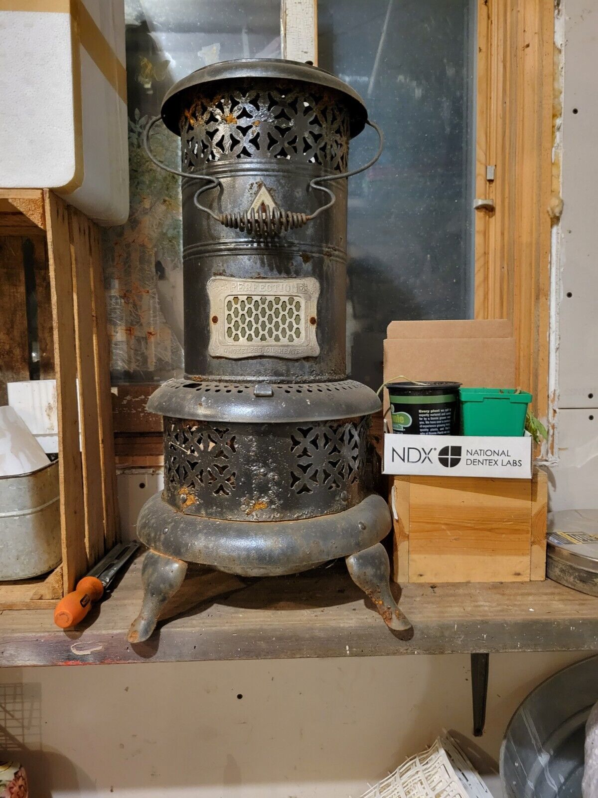 Title (ebay affiliate link): ANTIQUE VINTAGE PERFECTION 525 OIL HEATER PORTABLE SMOKELESS KEROSENE AMERICANA