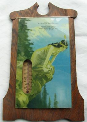 Antique Aitkin Minn. Adv Thermometer w/Indian Maiden