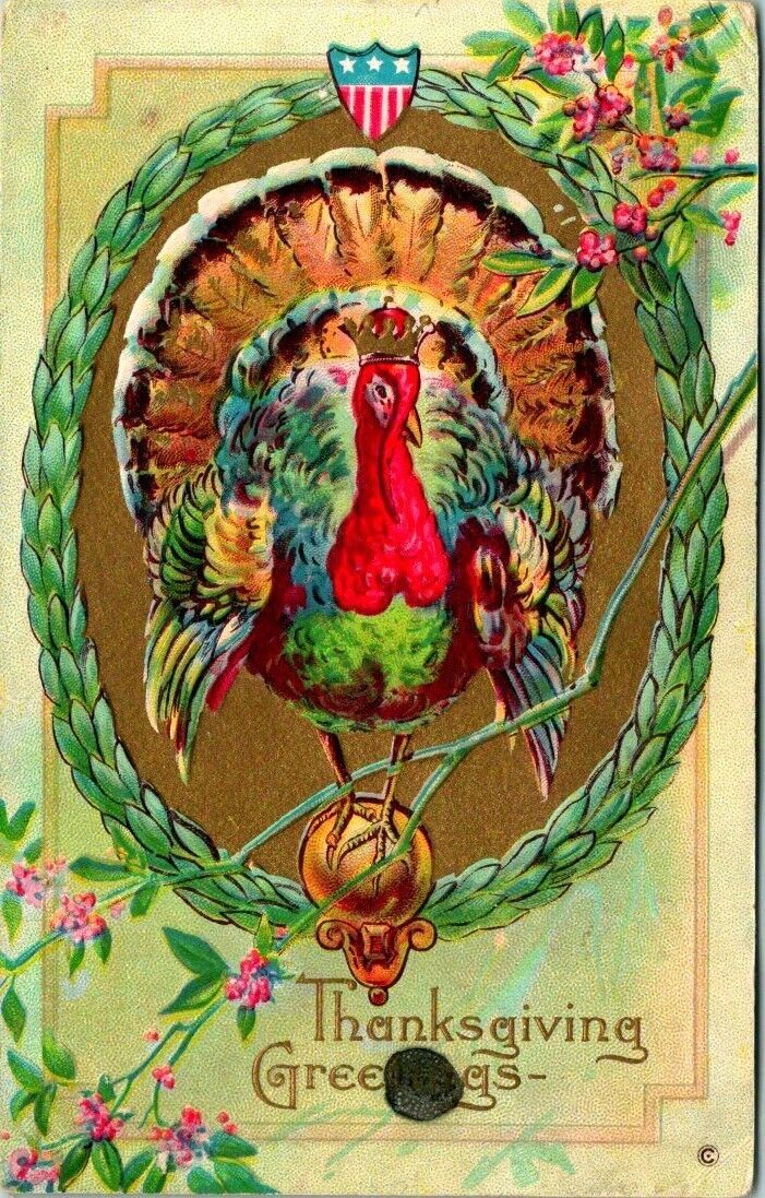 C640825 THANKSGIVNIG GREETINGS 190010S ANTIQUE POSTCARD.