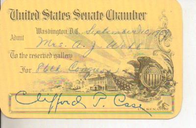 1959 US SENATE CHAMBER PASS CLIFFORD CASE NJ Senator