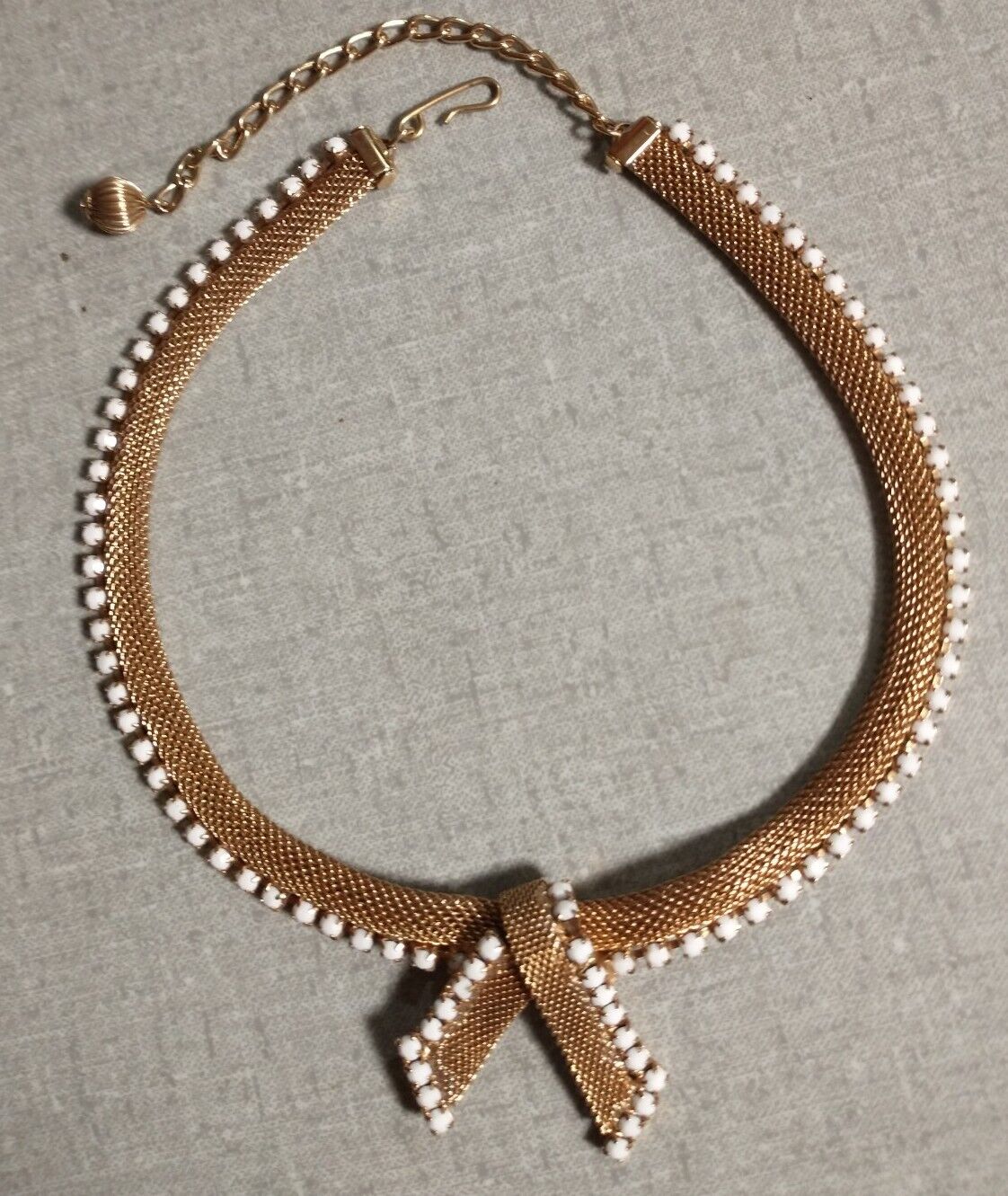 Title (ebay affiliate link): Vintage Hobe Gold Tone Mesh Choker Necklace With Milk glass Beading