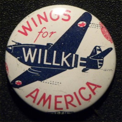 Title (ebay affiliate link): Orig 1940 'Wings for Willkie America' Tin Litho Pinback