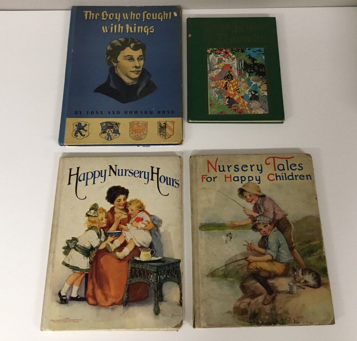 Antique children’s books hard copies lot of 4 bright colored illustrations