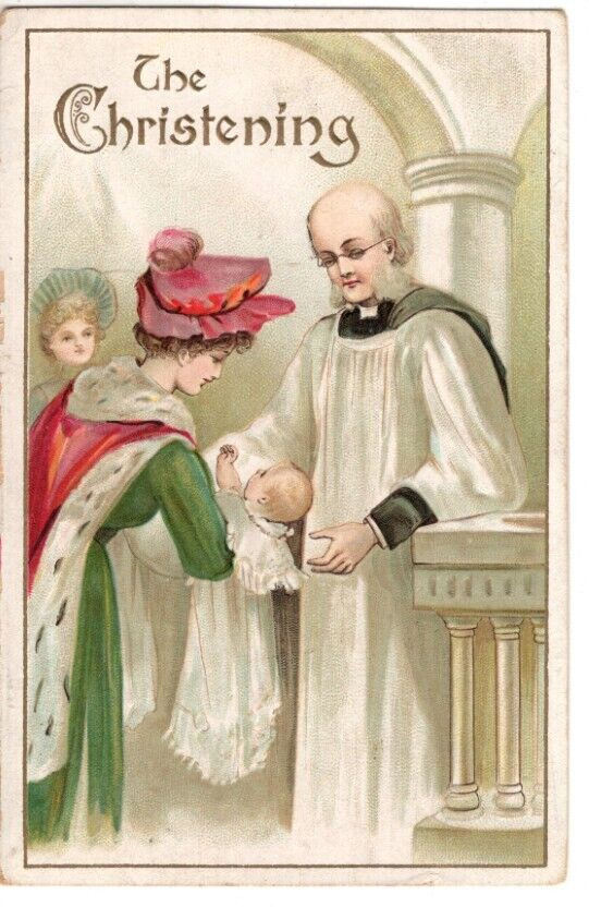 ANTIQUE EMBOSSED Postcard 34THE CHRISTENING34