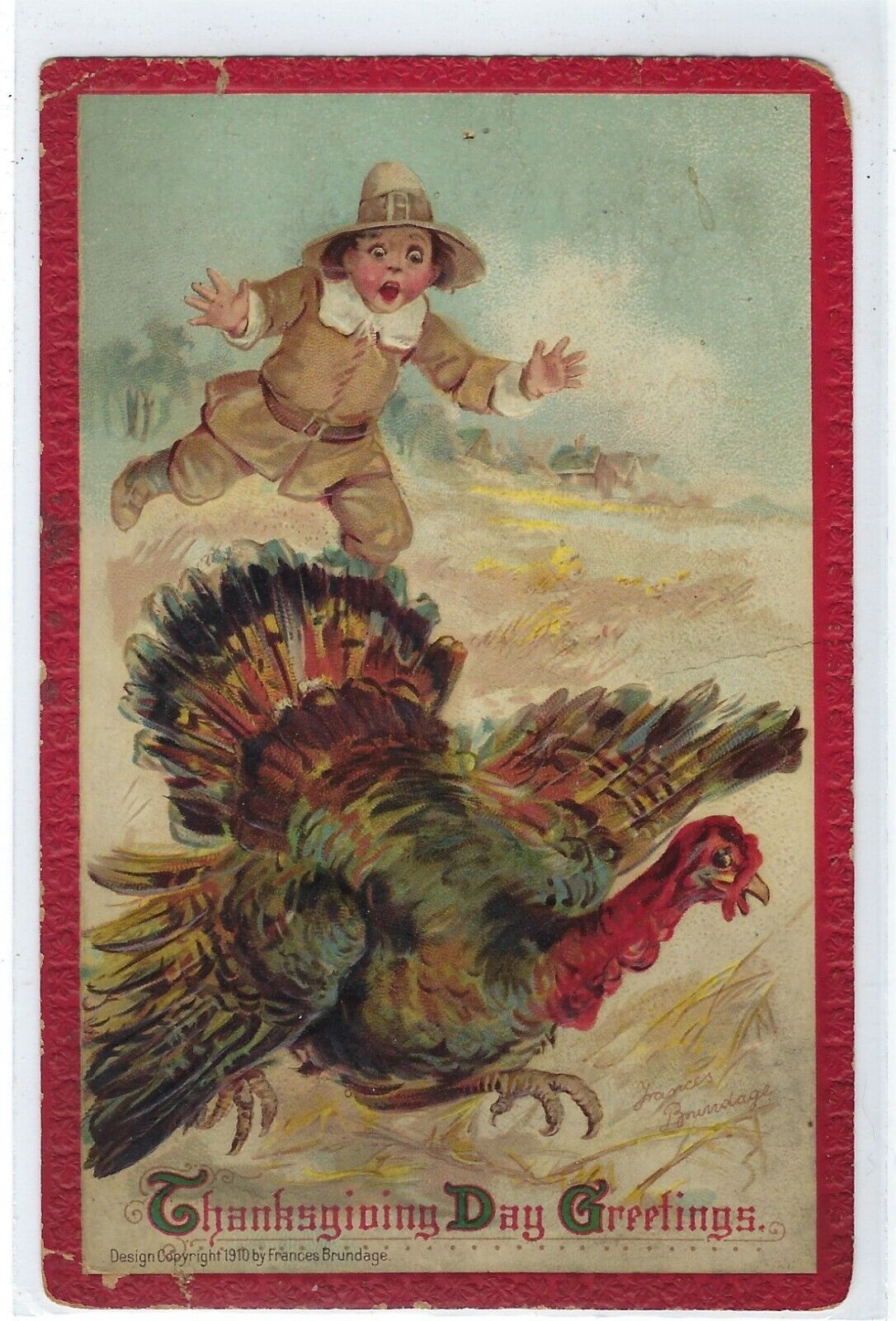 Title (ebay affiliate link): Antique Thanksgiving Postcard Thanksgiving Day Greetings Frances Brundage 1910