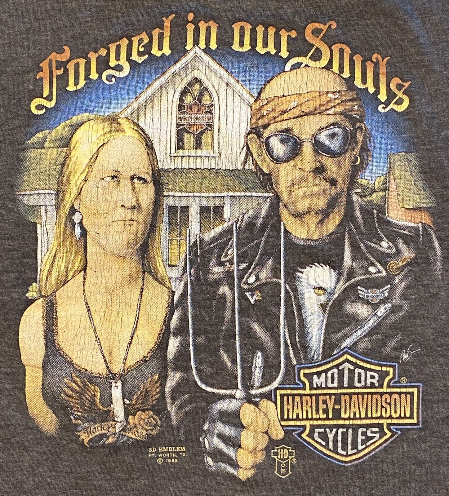 Title (ebay affiliate link): Vintage Harley Davidson 3D Emblem T Shirt Forged In Our Souls American Gothic