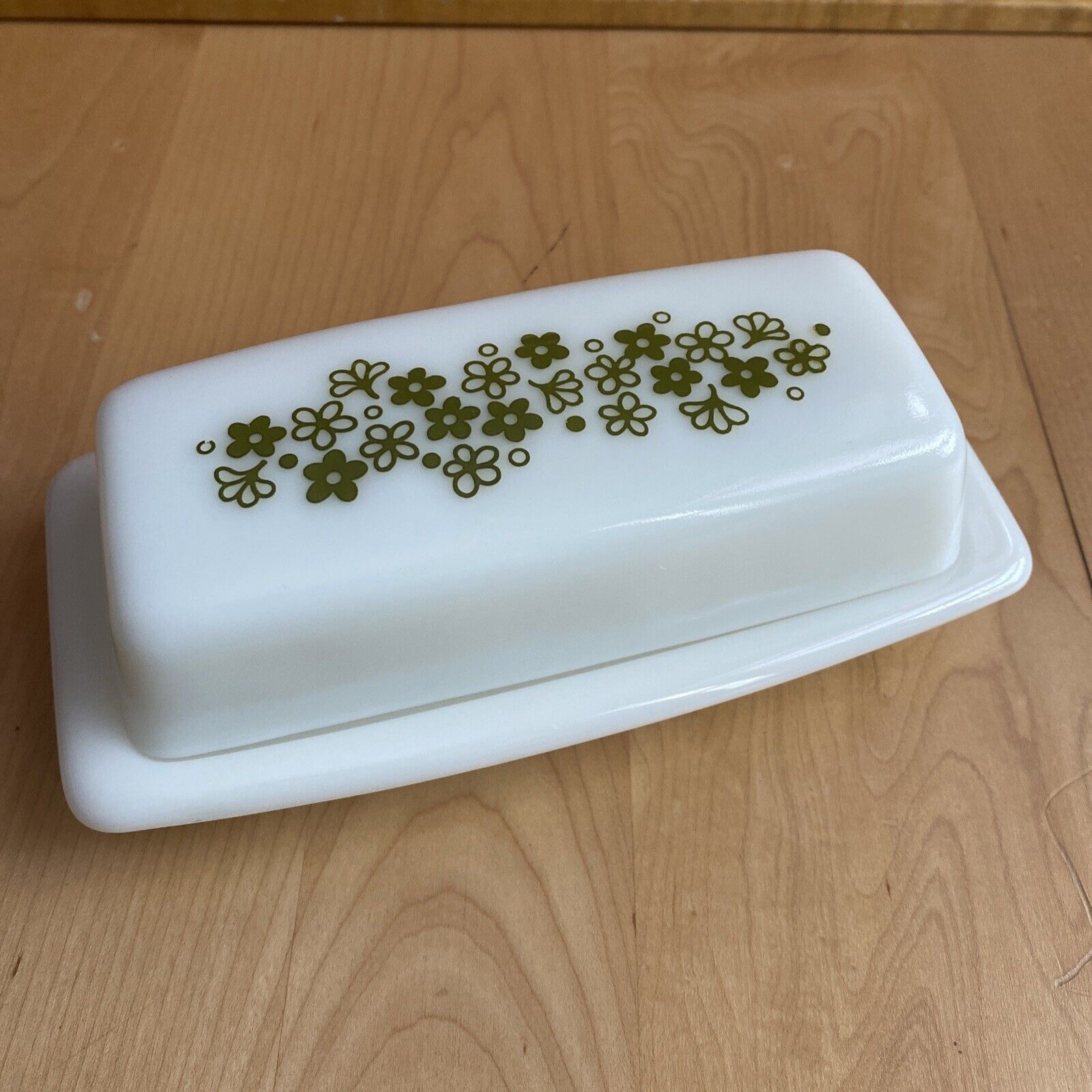 Vintage Pyrex 72B retro Spring Blossom Green Crazy Daisy Butter Dish milk glass