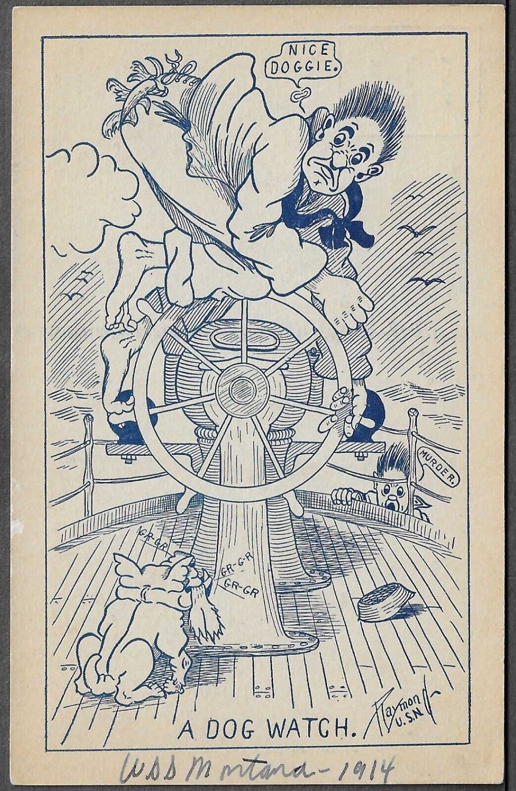 ANTIQUE POST CARD A DOG WATCH MARKED USS MONTANA 1914 BLANK UNPOSTED