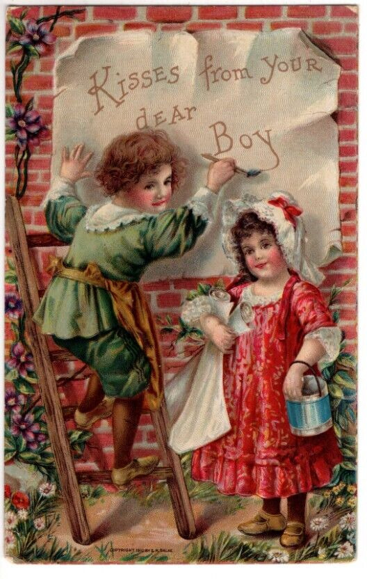 Title (ebay affiliate link): ANTIQUE EMBOSSED VALENTINE Postcard 34KISSES FROM YOUR DEAR BOY34