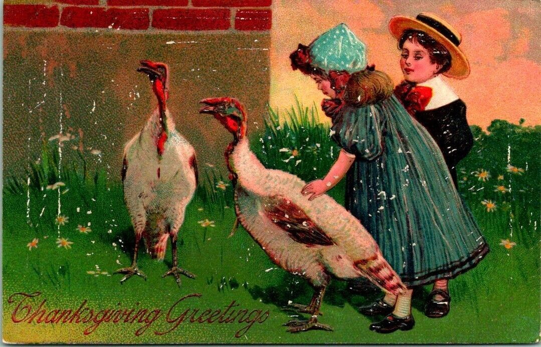 C640814 THANKSGIVNIG GREETINGS 190010S ANTIQUE POSTCARD.