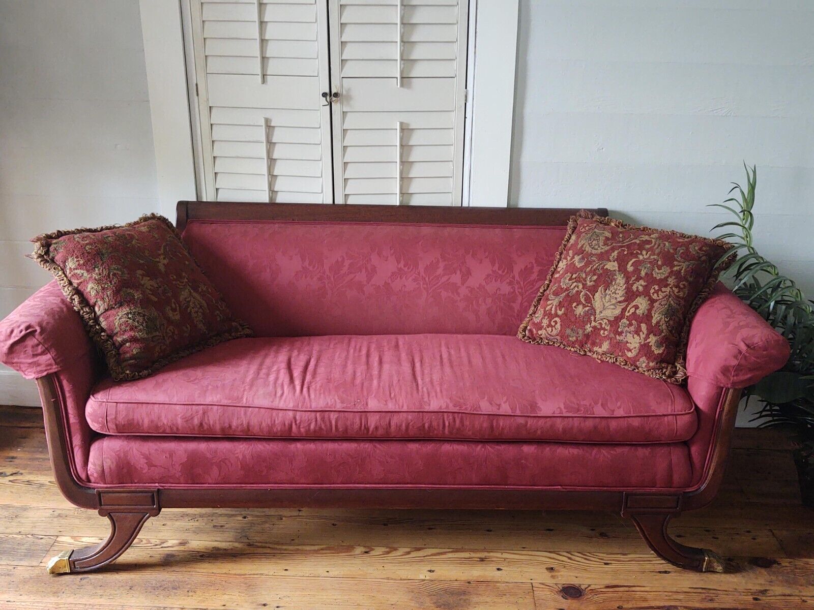 Title (ebay affiliate link): Duncan Phyfe Brass Claw Foot Carved Mahogany Sofa
