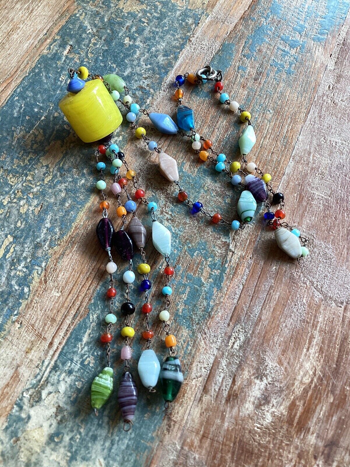Title (ebay affiliate link): Venetian Murano End Of Day Glass Tassel Flapper Necklace Vintage Deco Jewelry