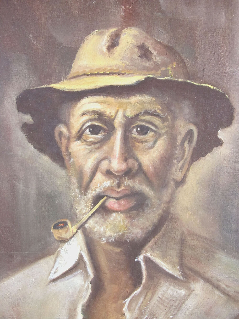 Antique ORIG H Cardoze Oil on Canvas Old Black Man w/Pipe in Hat yqz