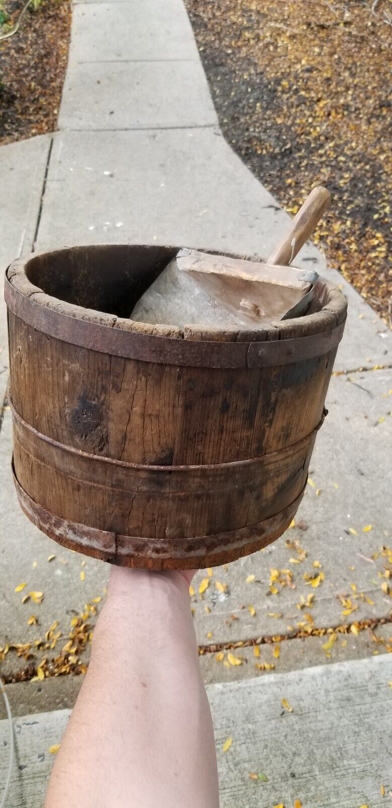 Title (ebay affiliate link): Antique Early Primitive wood grain ? Bucket w / primitive grain scoop AAFA