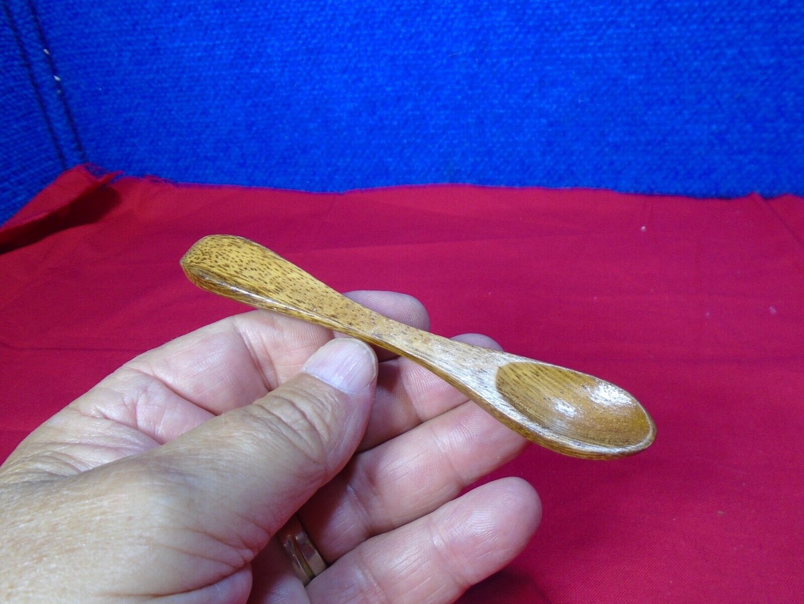 ANTIQUE Vintage TREEN 434 Miniature TINY Wood CARVED Spice PRIM Mustard SPOON 1