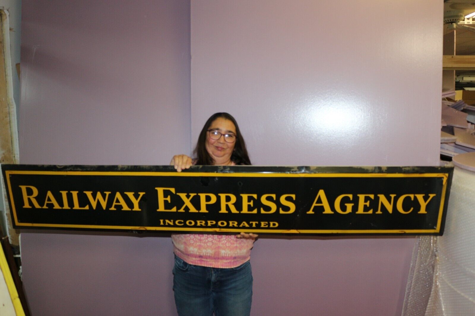 Title (ebay affiliate link): Large Vintage 1930s Railway Express Agency Railroad 7234 Porcelain Metal Sign