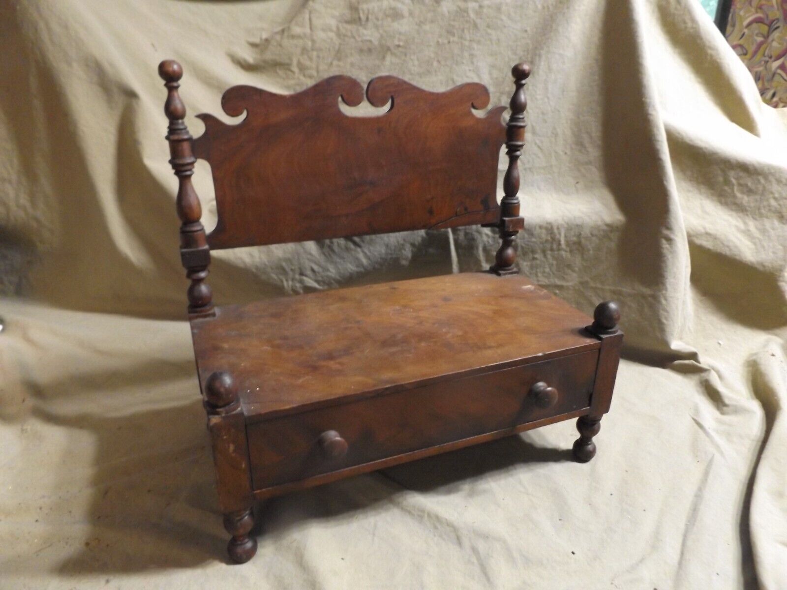 Title (ebay affiliate link): Antique Mahogany Doll Bench Style Bureau Box w Dovetailed Poplar Drawer