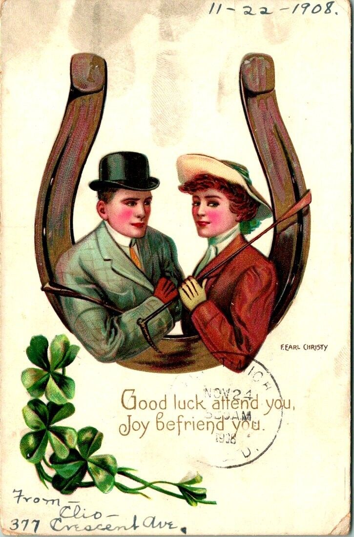 C642191 GOOD LUCK ATTEND YOU TUCKS 190010S ANTIQUE POSTCARD.