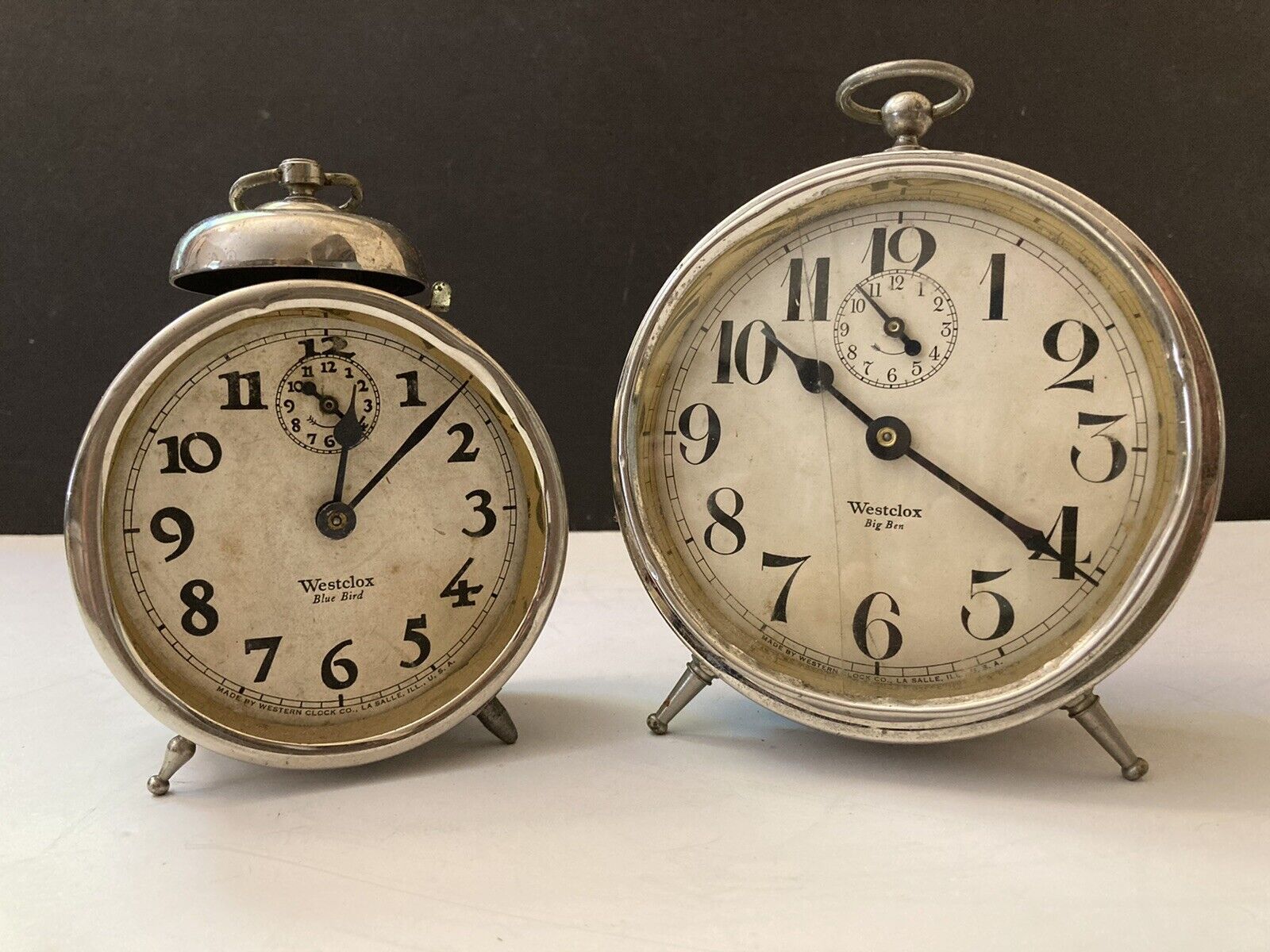 Title (ebay affiliate link): Antique Westclox Big Ben Alarm Clocks Silver Tone Lot of 2 For Parts