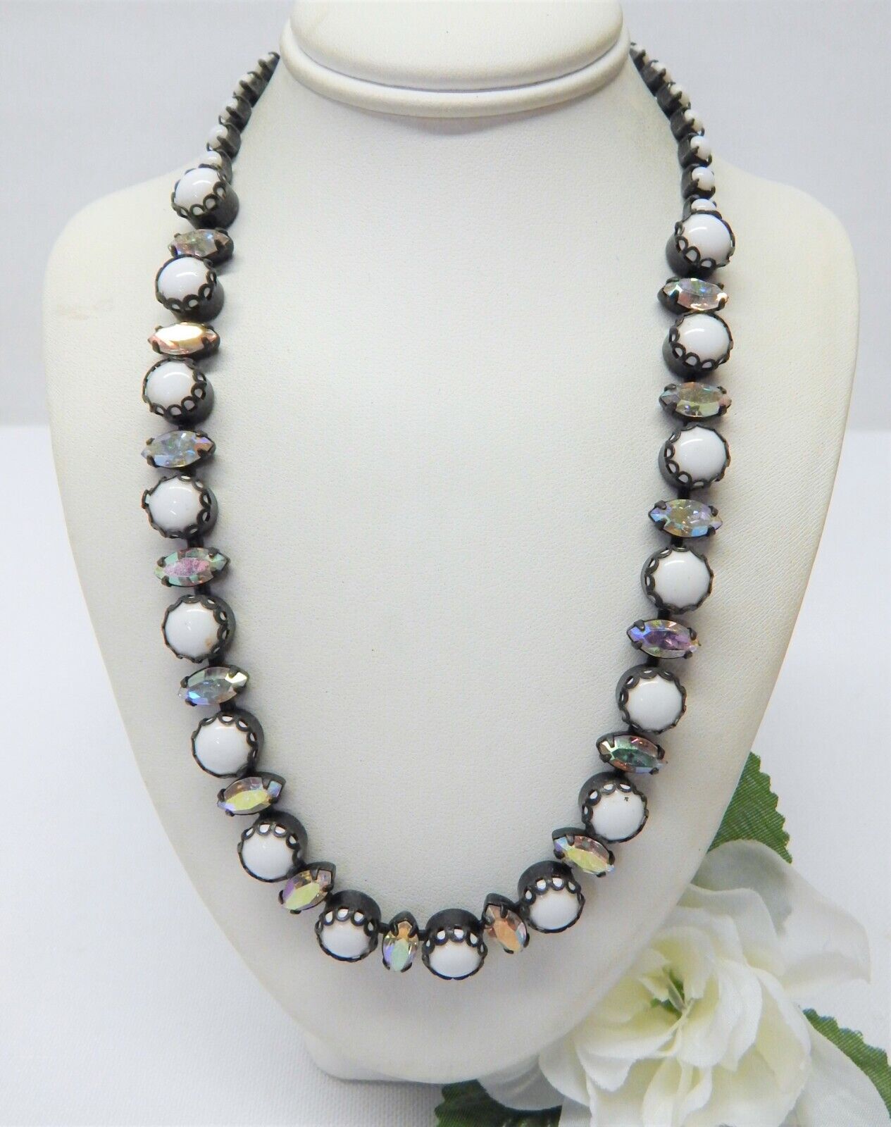 Title (ebay affiliate link): VINTAGE MILK GLASS AURORA RHINESTONE FORMAL COLLAR NECKLACE 1534