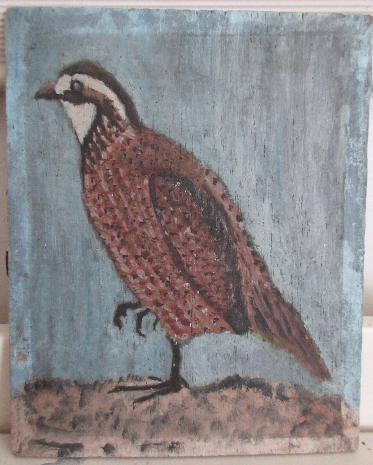 Title (ebay affiliate link): BOBWHITE IN PROFILE Small Antique Folk Art Bird Oil Painting on Wood Panel