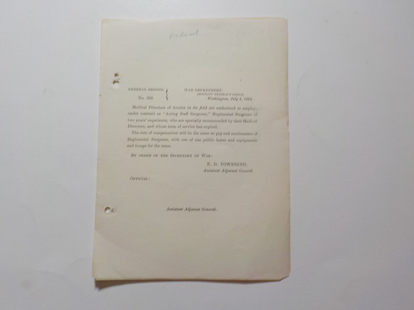 Civil War Document 1864 Acting Staff Surgeons Medical Directors Antique 1 Paper