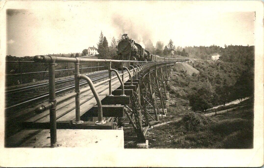 C643574 TRAIN ON A BRIDGE ANTIQUE REAL PHOTO POSTCARD.