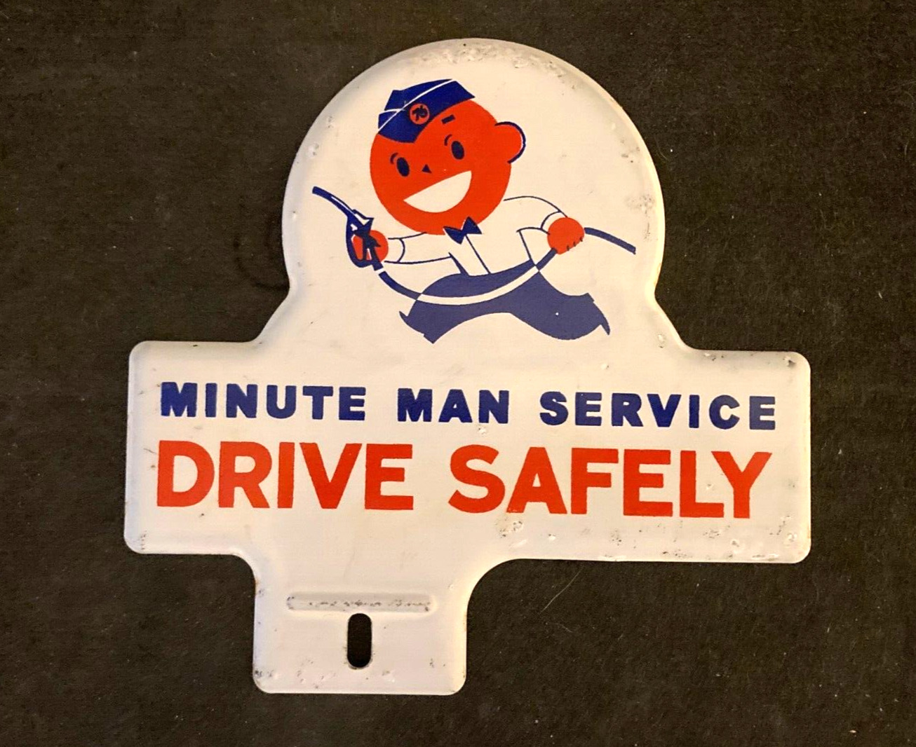 Vntg UNION 76 MINUTE MAN SERVICE LICENSE PLATE TOPPER Rare Old Advertising Sign
