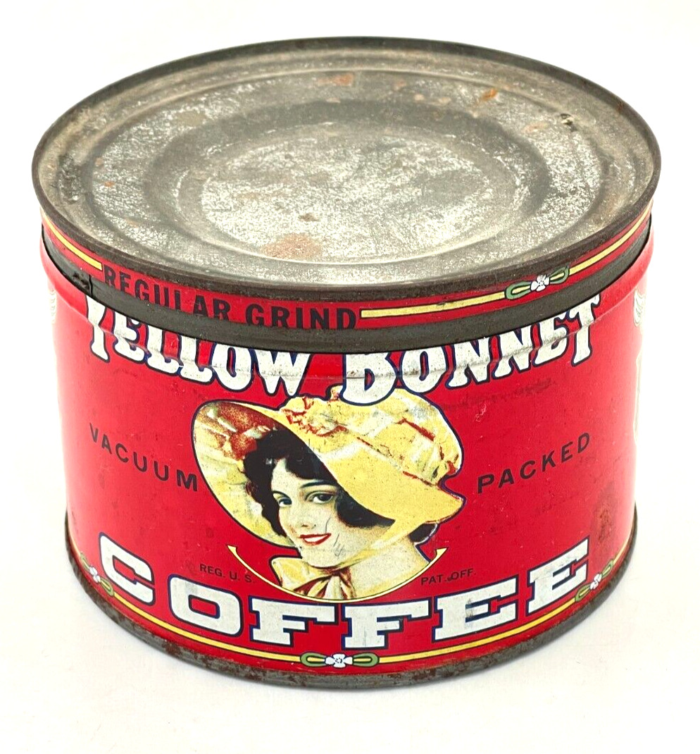 Title (ebay affiliate link): Yellow Bonnet Coffee Tin 1 lb with lid no key Springfield Grocery Company MO