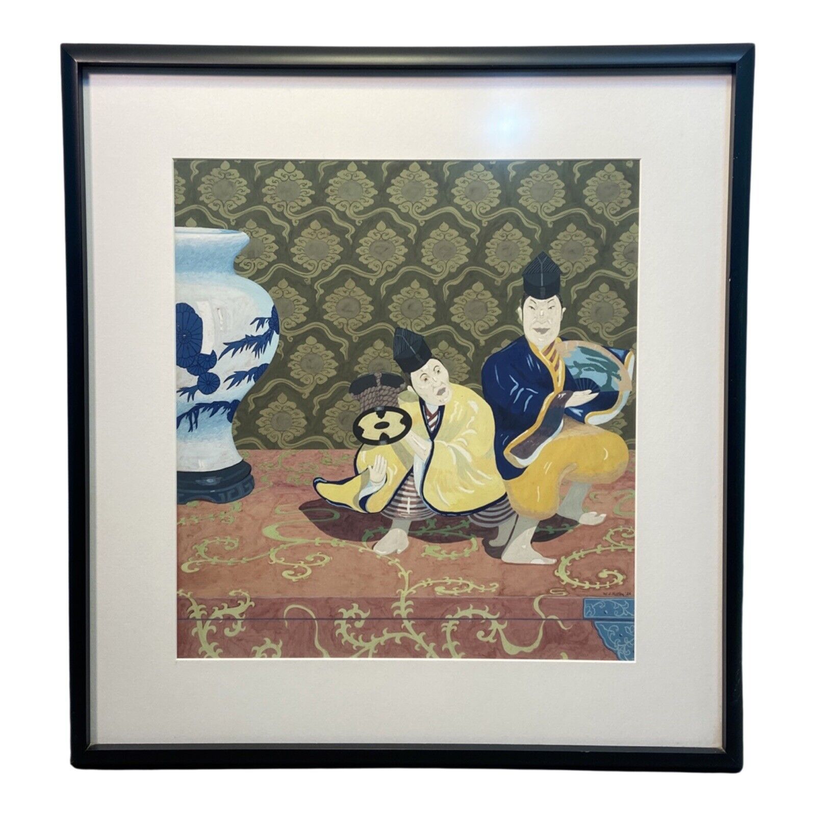 1926 Antique WJ KIRBY Old GOUACHE WATERCOLOR Oriental Decor STILL LIFE PAINTING