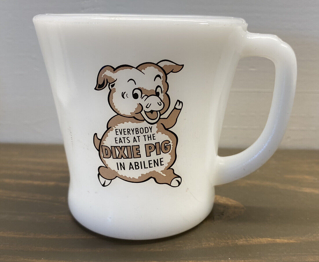 Title (ebay affiliate link): RARE Anchor Hocking Fire King Dixie Pig Restaurant Milk Glass Coffee Cup Mug