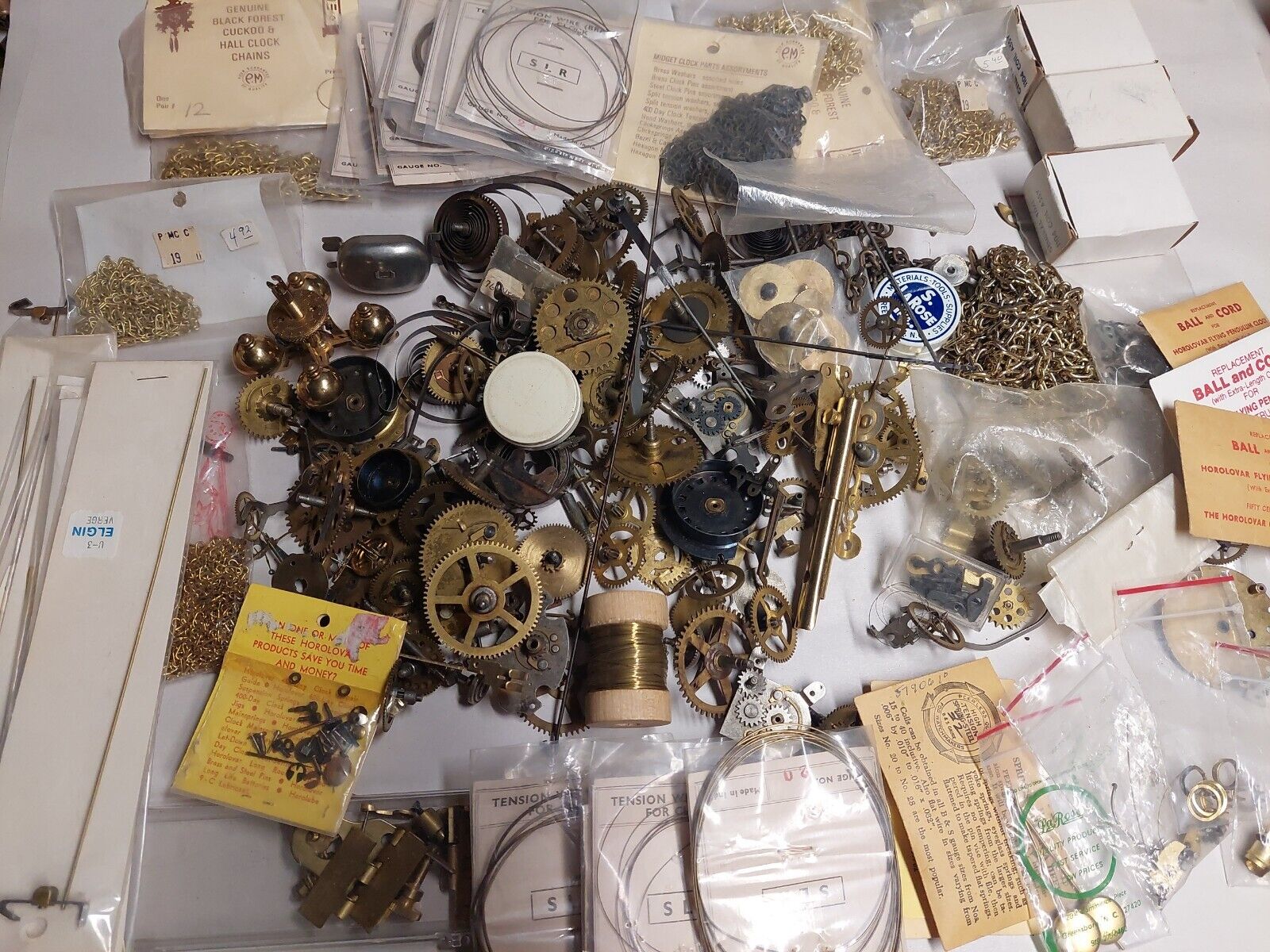 Vintage Large Mixed Lot of Used Clock Repair Parts Chain New and Used