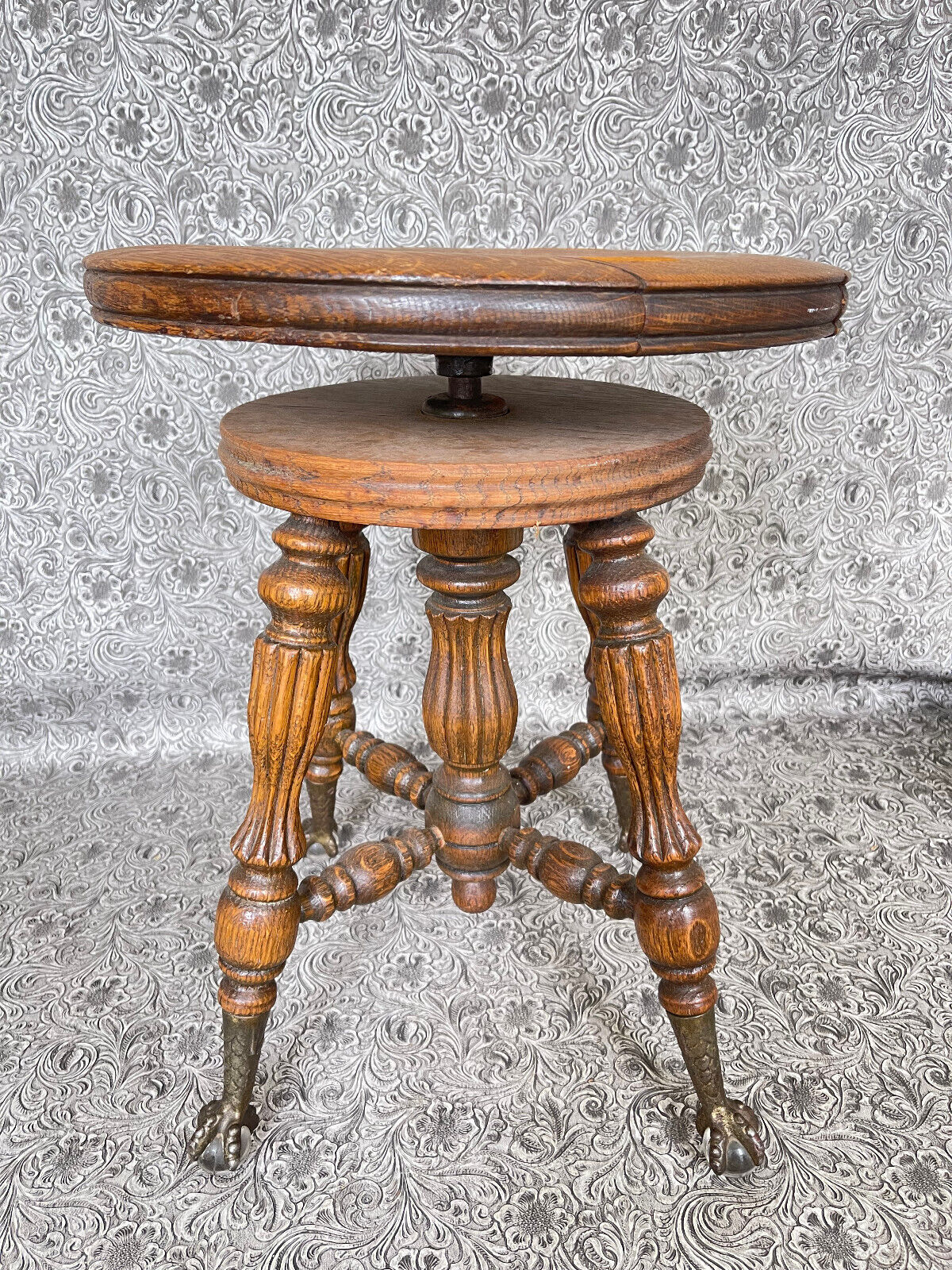 RARE John Gerts Antique Piano Stool Bench Tiger Oak Glass Claw Feet Chicago 1882