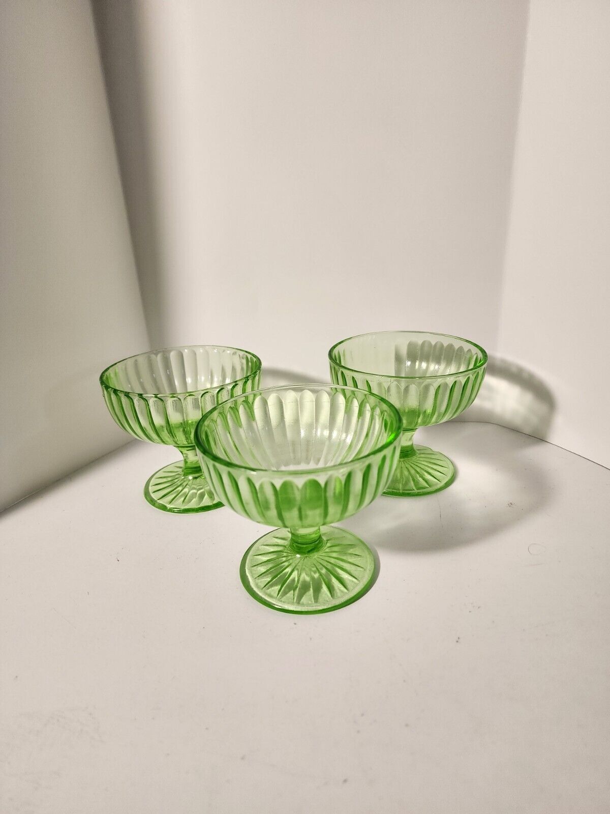 3 Vintage Uranium Vaseline Depression Glass Parfait Bowl Compote 334 Tall