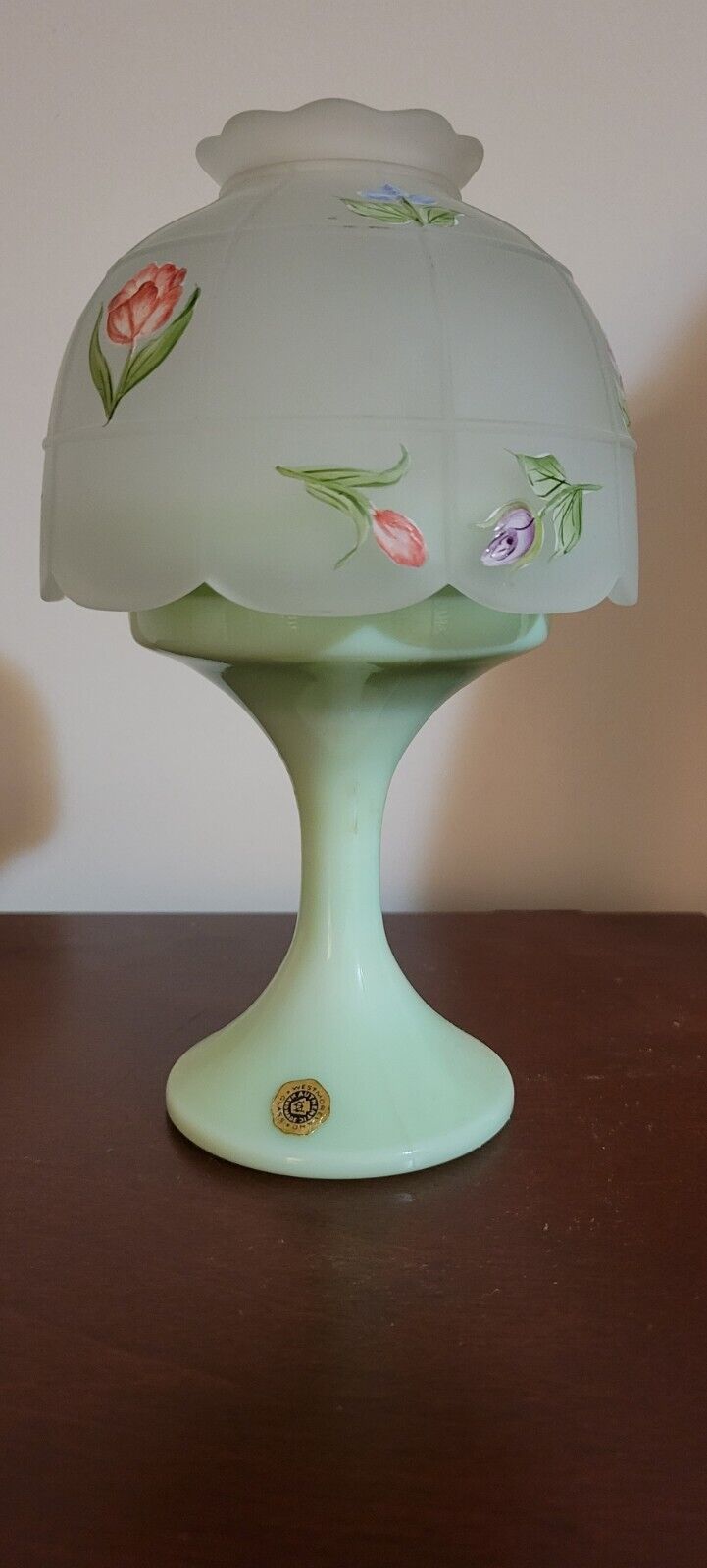 Vintage Westmoreland Jadeite Green Milk Glass Fairy Lamp Floral Shade