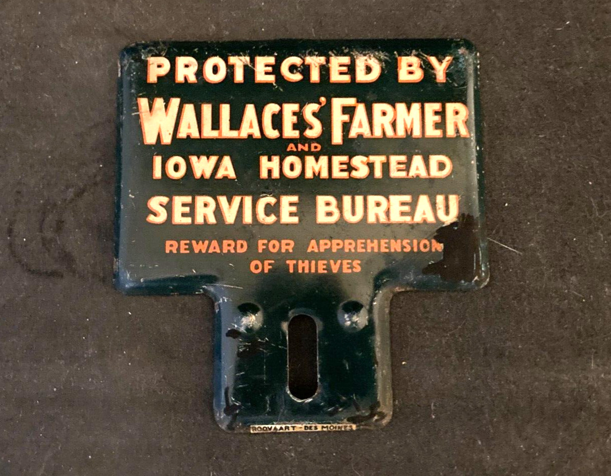 Vtg WALLACES FARMER SERVICE BUREAU LICENSE PLATE TOPPER Rare Old Advertisin Sign