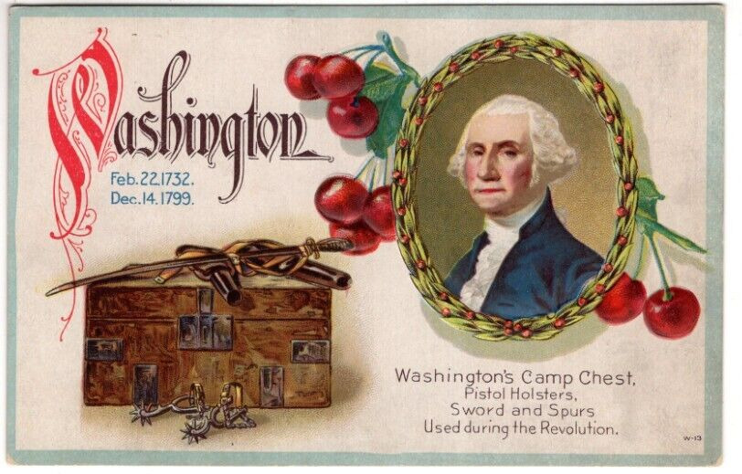 ANTIQUE PATRIOTIC Postcard WASHINGTONS CAMP CHEST PISTOL HOLSTERS SWORD