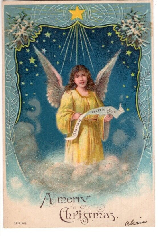 ANTIQUE EMBOSSED CHRISTMAS Postcard ANGEL 34GLORIA IN EXELSIS DEO34