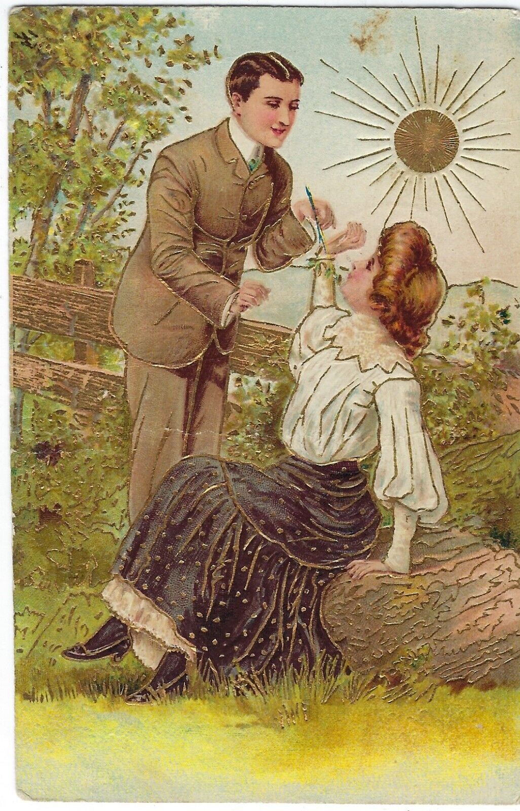 Antique Victorian Lady LOVERS Postcard Gold Trimmed Embossed