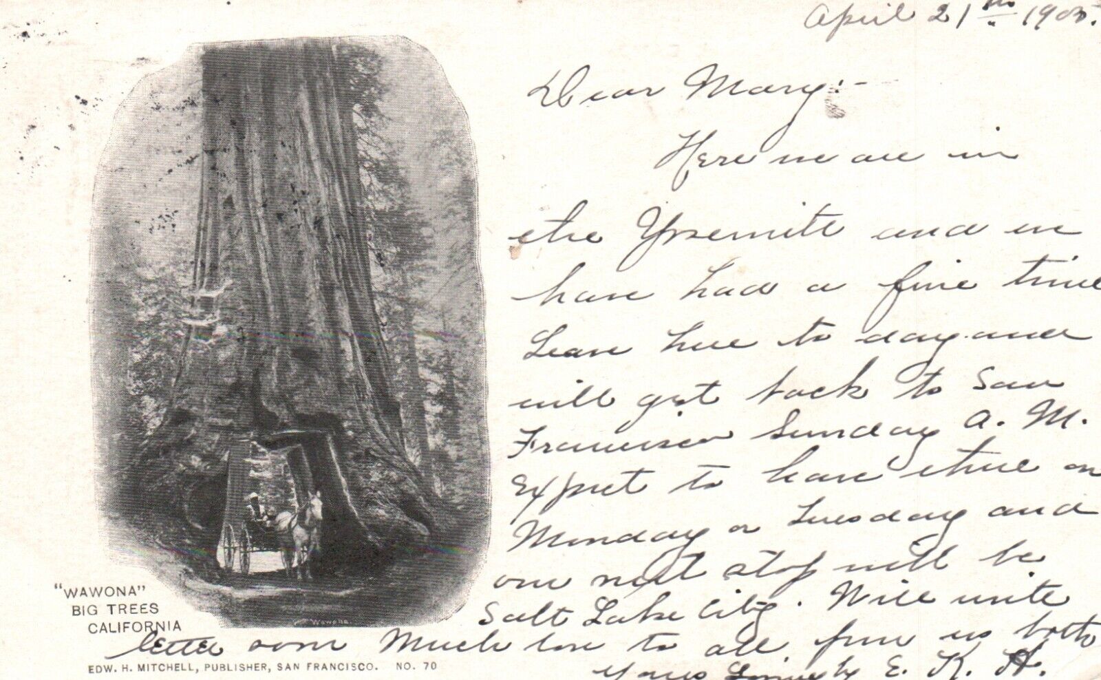 Title (ebay affiliate link): Big Trees California CA 34Wawona34 1905 PMC Antique Vintage Postcard e1594