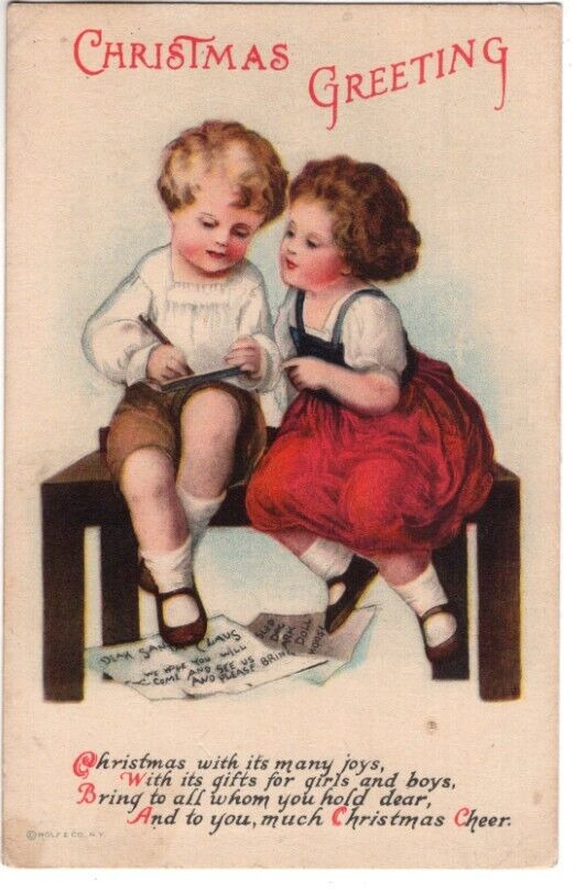 Title (ebay affiliate link): ANTIQUE CHRISTMAS Postcard YOUNG BOY AND GIRL ON BENCH WRITING TO SANTA CLAUS