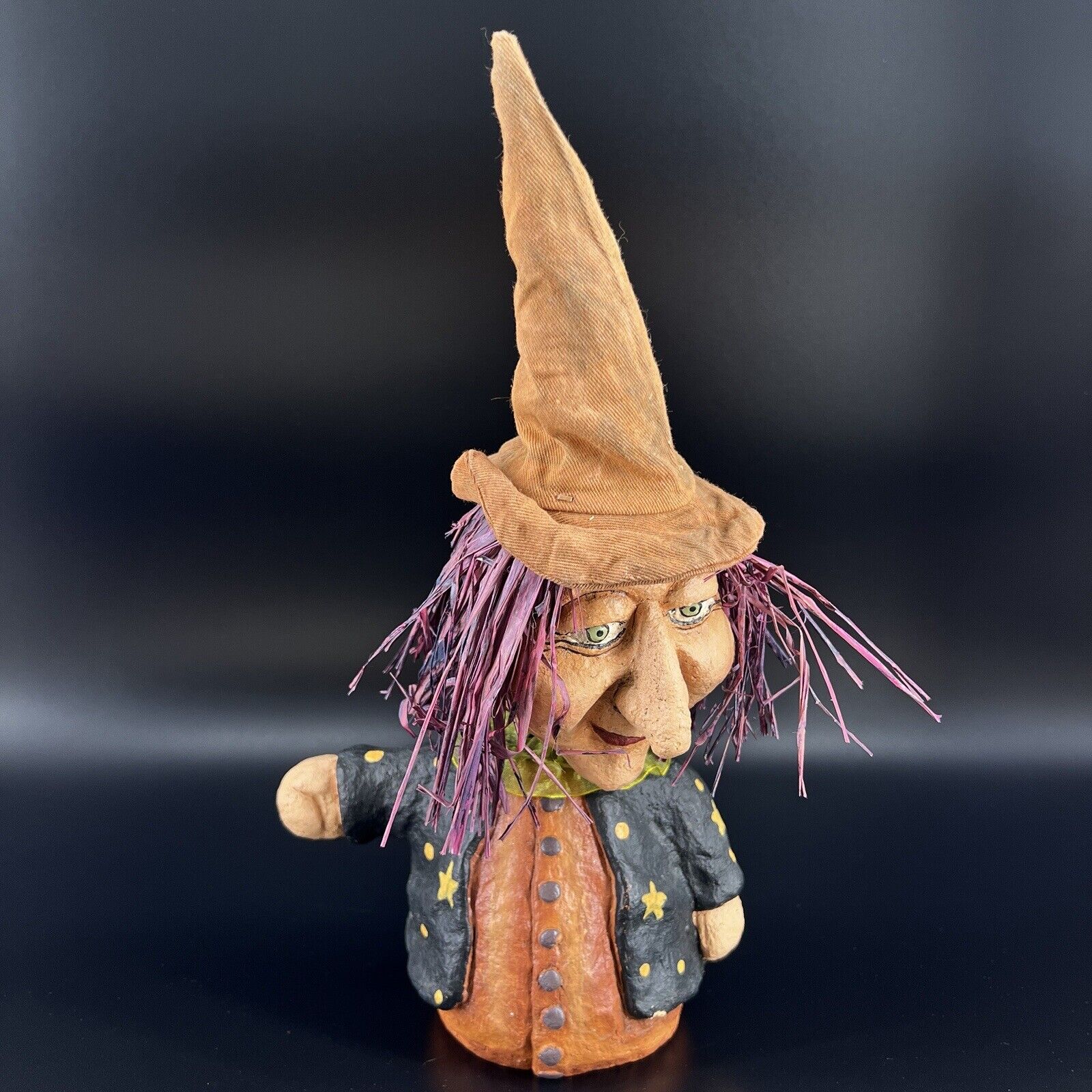 Contemporary Halloween Bobble Head Folk Art Style Witch Figurine Decoration