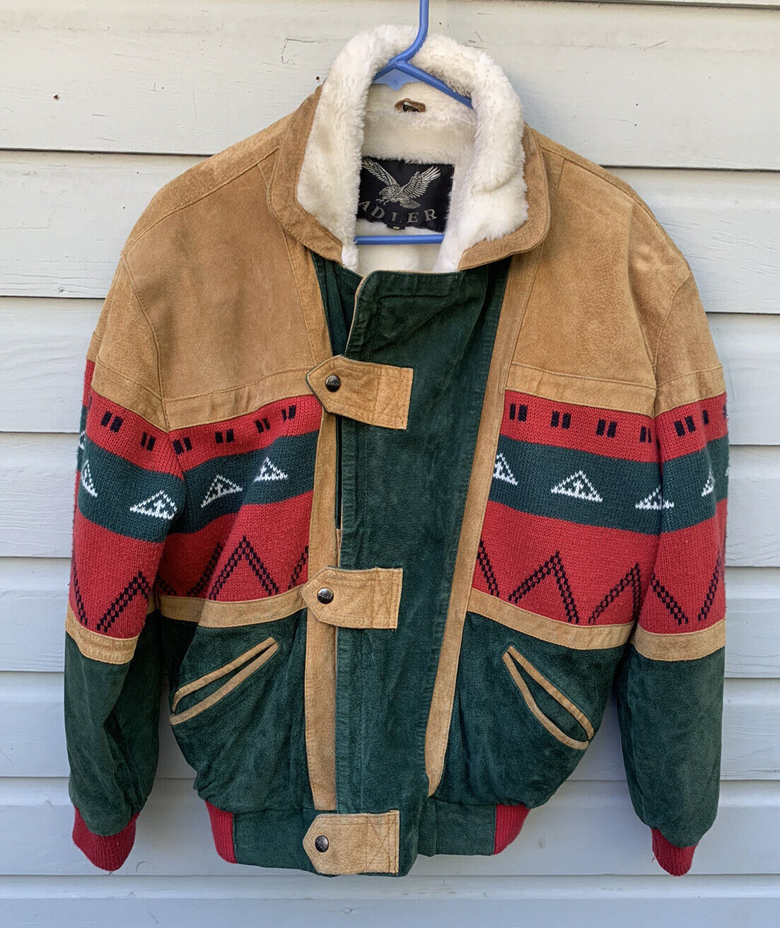Title (ebay affiliate link): Vintage 1990s Adler Aztec Southwestern Leather Jacket Sherpa Lined Men’s Small
