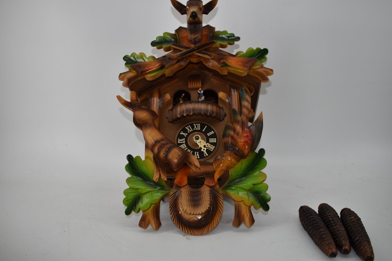 Title (ebay affiliate link): Antique German Stag Missing Antlers/Bird/Rabbit Cuckoo Clock 0188B