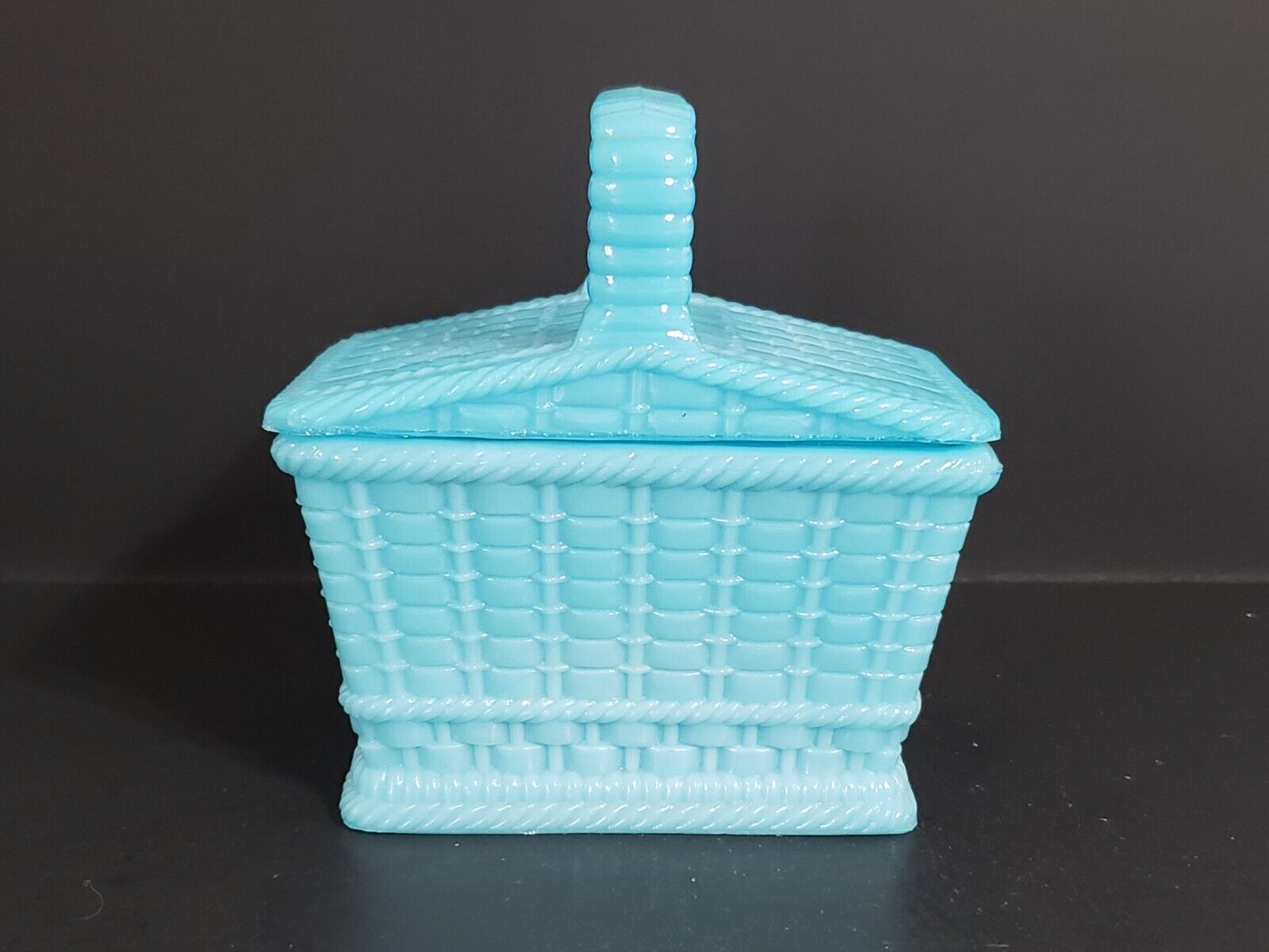 336 Milk Glass Portieux Picnic Basket Blue