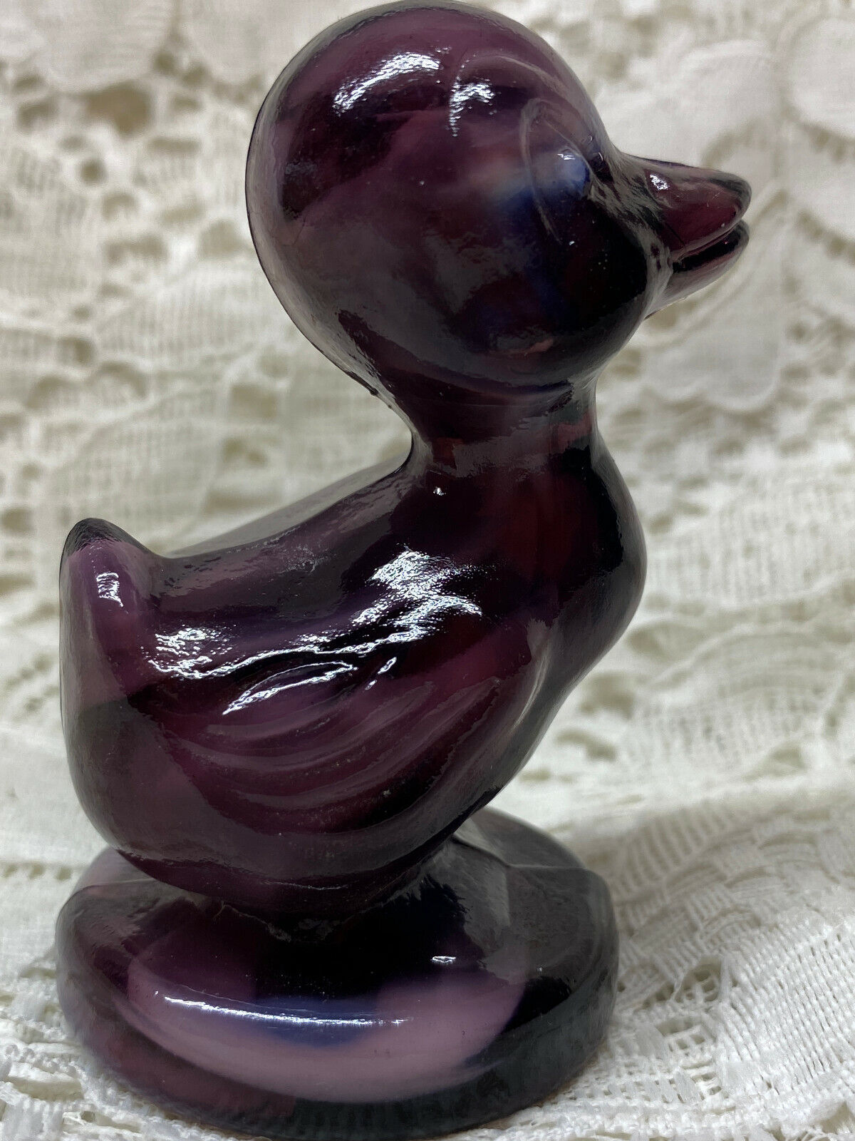 Vintage Purple Amethyst milk slag glass Debbie duck Bird Boyd animal paperweight