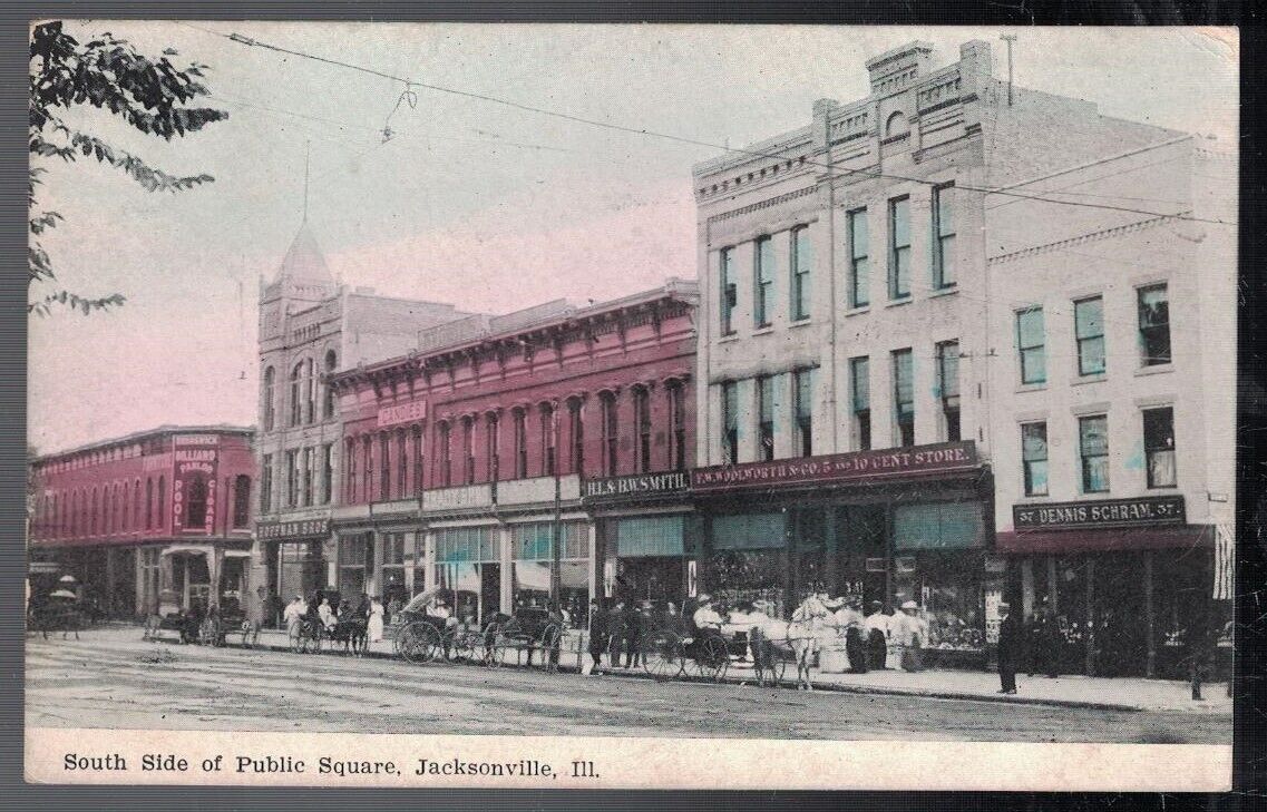 ANTIQUE 1908 SOUTH SIDE OF PUBLIC SQUARE JACKSONVILLE ILLINOIS POSTCARD