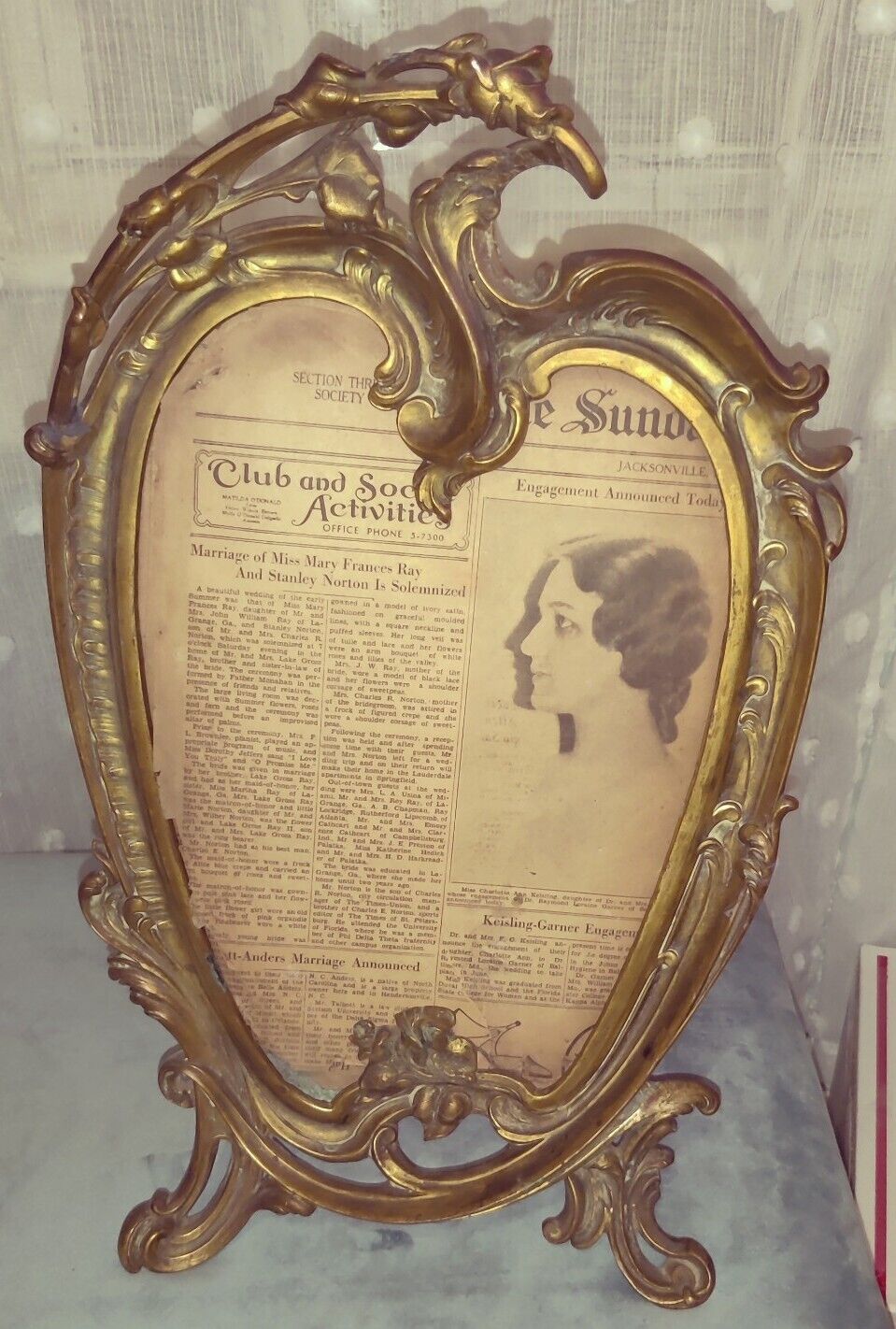 Title (ebay affiliate link): True Antique French Gilded Bronze Art Nouveau heart Shape Mirror Frame
