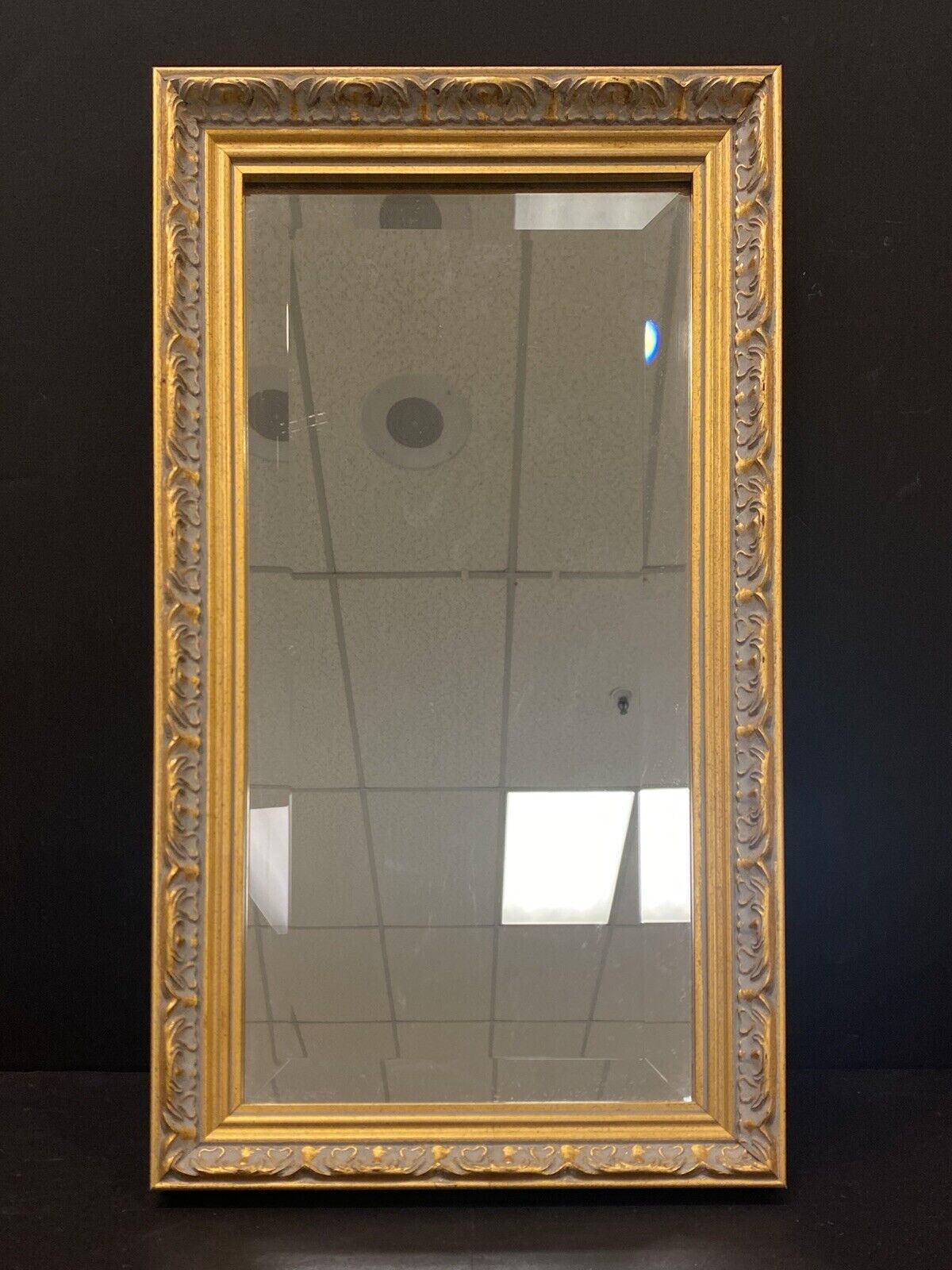 Vintage Ornate Gold Gilded Wood Wall Beveled Framed Mirror 10 1/2 x 18 1/2